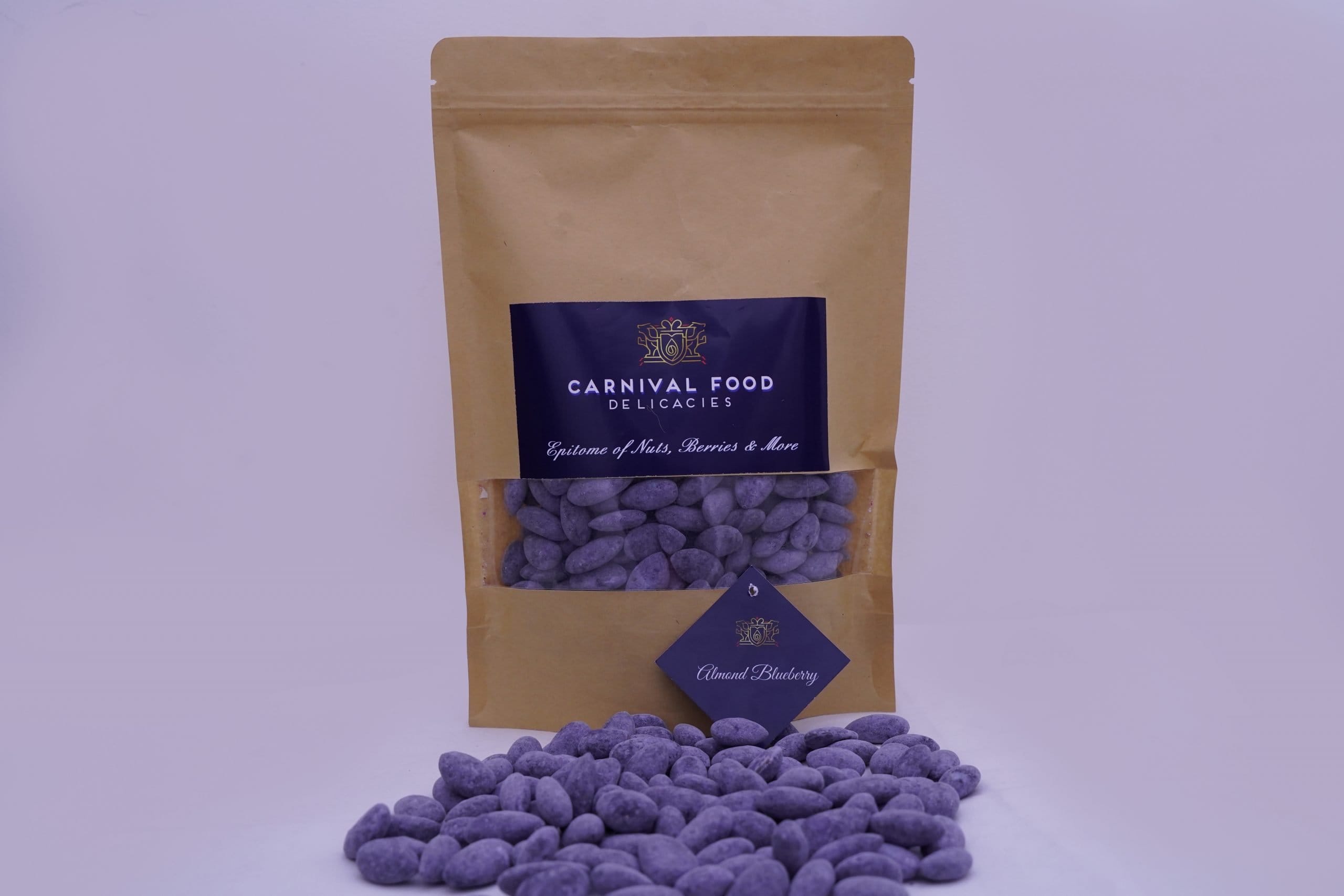 A perfect blend of a nut and a fruit, Almond blueberry is a perfect snack time partner for those who crave for a tropical taste with health benifits.While the almond is often eaten on its own, raw or toasted, it is also a component of various dishes. Almonds are available in many forms, such as whole, slivered, and ground into flour. Almond pieces around 2–3 mm in size, called “nibs”, are used for special purposes such as decoration. Almonds are 4% water, 22% carbohydrates, 21% protein, and 50% fat (table). In a 100-gram (312-ounce) reference amount, almonds supply 2,420 kilojoules (579 kilocalories) of food energy.