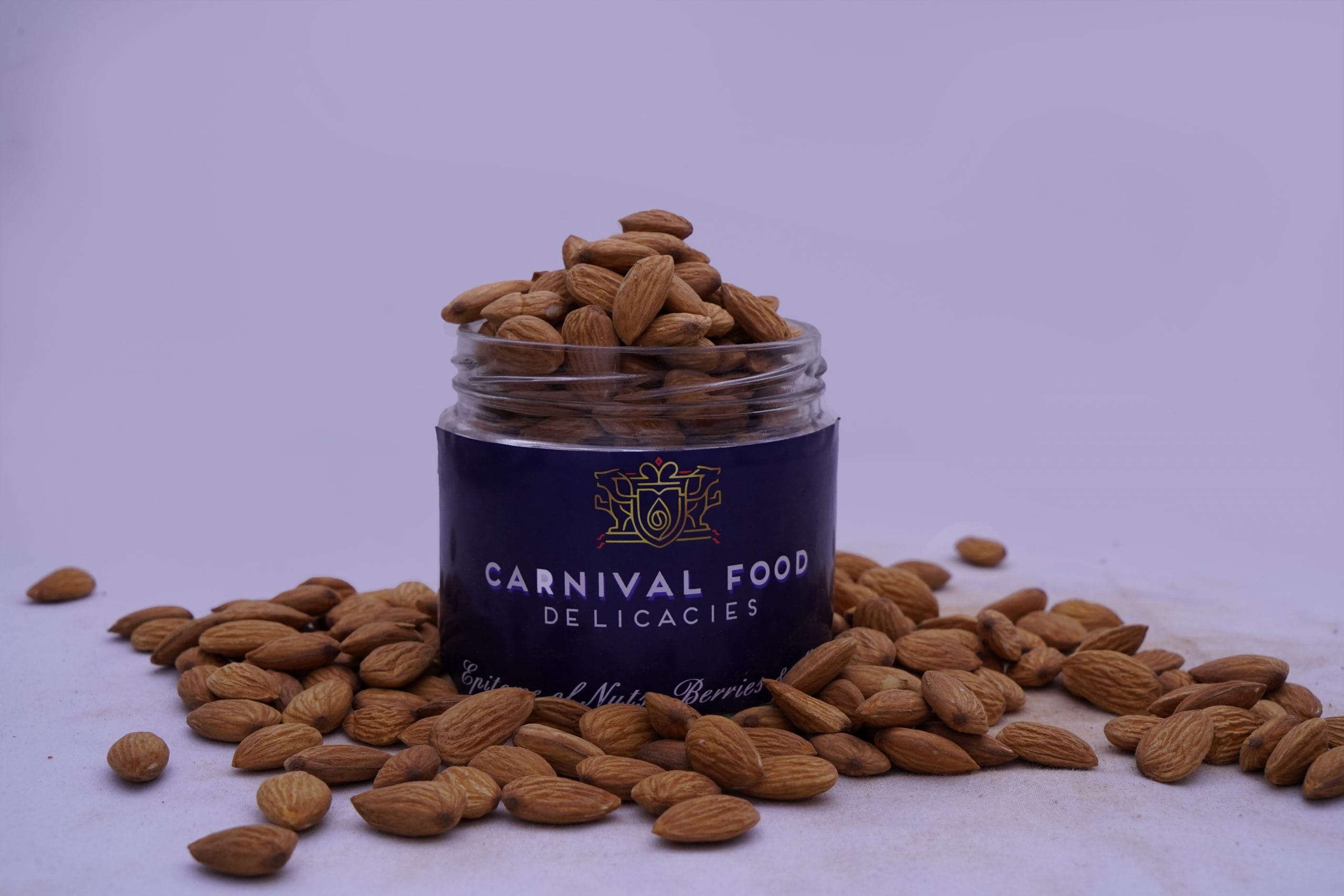 Simple yet exotic, California Almonds always make a perfect snack. While the almond is often eaten on its own, raw or toasted, it is also a component of various dishes. Almonds are available in many forms, such as whole, slivered, and ground into flour. Almond pieces around 2–3 mm in size, called “nibs”, are used for special purposes such as decoration. Almonds are 4% water, 22% carbohydrates, 21% protein, and 50% fat (table). In a 100-gram (31⁄2-ounce) reference amount, almonds supply 2,420 kilojoules (579 kilocalories) of food energy