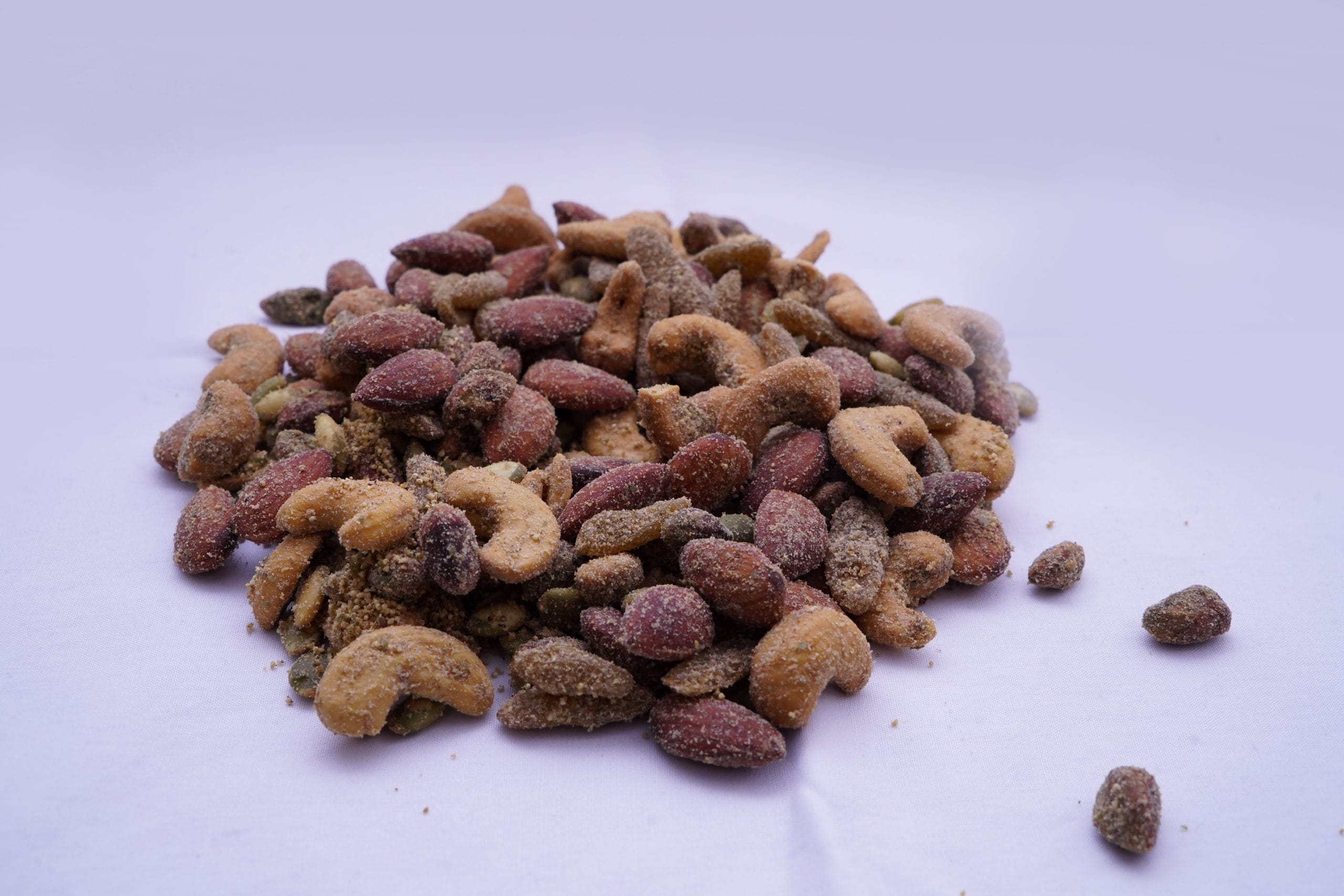 - A crunchy snack mix featuring a blend of nuts and seeds coated with cajun-inspired seasonings